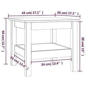 vidaXL Sofabord svart 45x45x40 cm massivt furu 814268