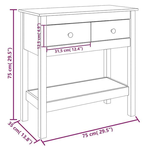vidaXL Konsolbord honungsbrun 75x35x75 cm massiv furu 814622