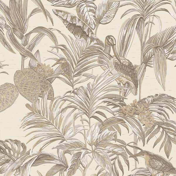 vidaXL DUTCH WALLCOVERINGS Tapet Bird-of-Paradise gräddvit 430611