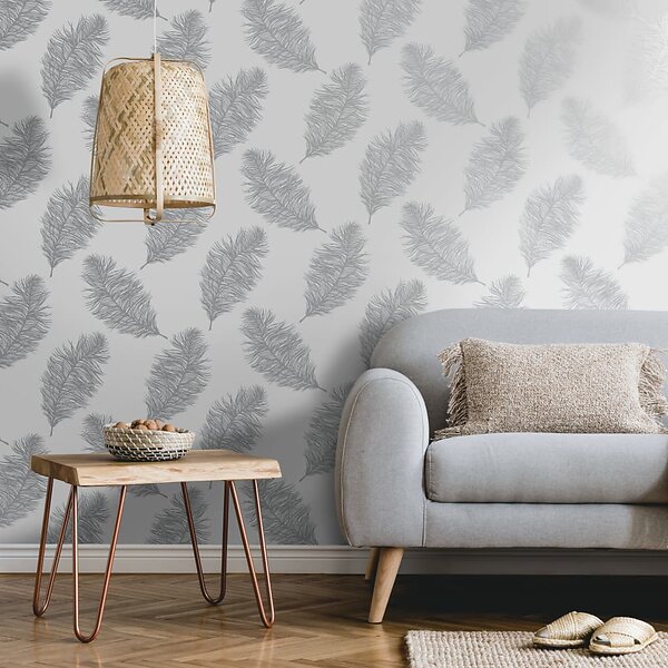 vidaXL DUTCH WALLCOVERINGS Tapet Fawning Feather ljusgrå 437410