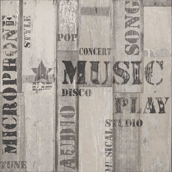 vidaXL Noordwand Urban Friends & Coffee Træplanker Tapet Grå og Sort (425305)
