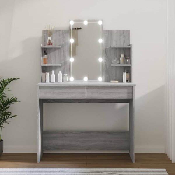 vidaXL Sminkbord med LED grå sonoma 96x40x142 cm 820488