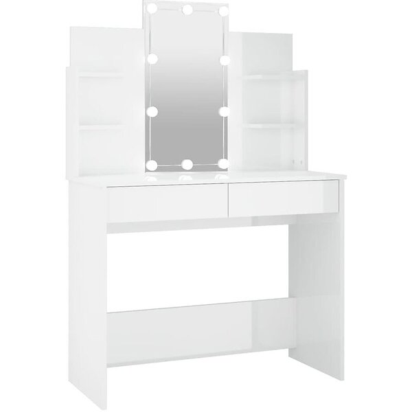 vidaXL Sminkbord med LED vit högglans 96x40x142 cm 808825