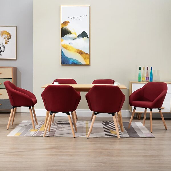 vidaXL Matstolar 6 st vinröd tyg 278425
