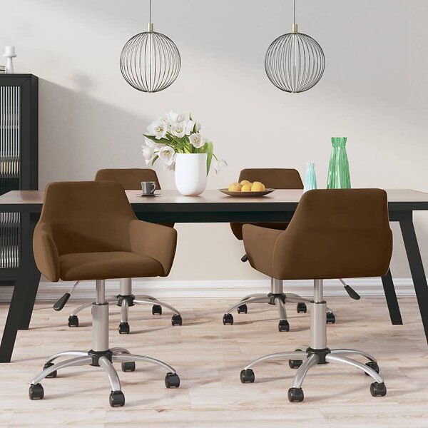 vidaXL Snurrbara matstolar 4 st brun sammet 3092684