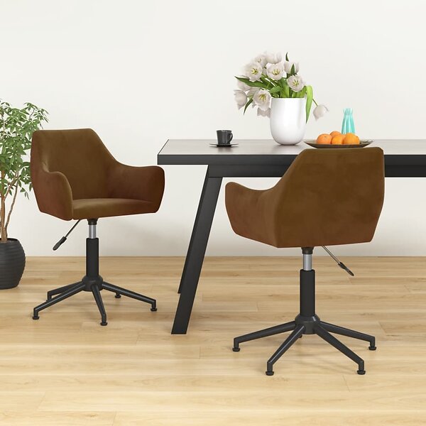 vidaXL Snurrbara matstolar 2 st brun sammet 331015