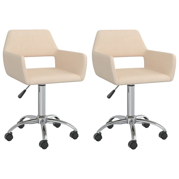 vidaXL Snurrbara matstolar 2 st gräddvit tyg 330321