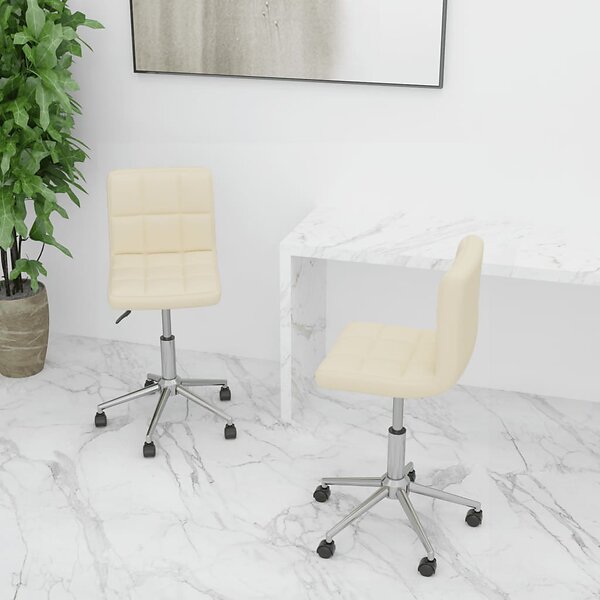 vidaXL Snurrbara matstolar 2 st gräddvit tyg 334449