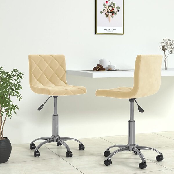vidaXL Snurrbara matstolar 2 st gräddvit sammet 333752