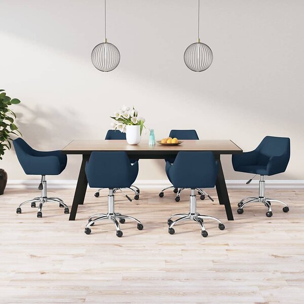 vidaXL Snurrbara matstolar 6 st blå tyg 3090282