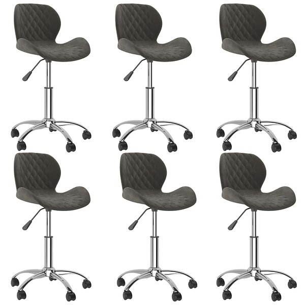 vidaXL Snurrbara matstolar 6 st mörkgrå sammet 3088318