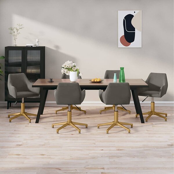 vidaXL Snurrbara matstolar 6 st mörkgrå sammet 3092623