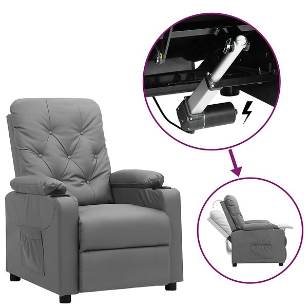 vidaXL fåtölj med uppresningshjälp grå konstläder 3093501