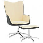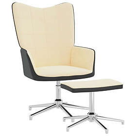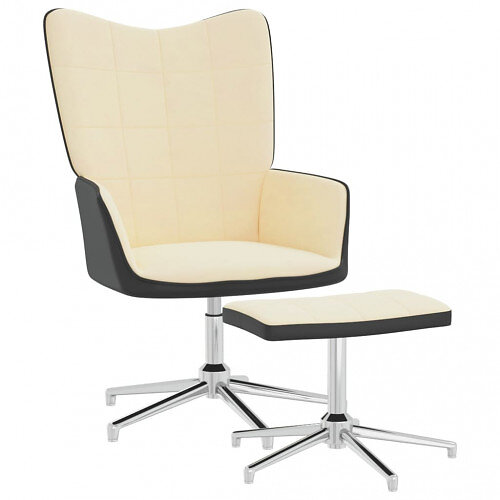 vidaXL Vilstol med fotpall gräddvit sammet och PVC 327873