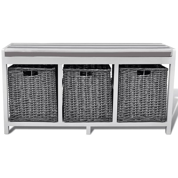 vidaXL Sittbänk med dyna 3 korgar 100x35x51cm vit 240807