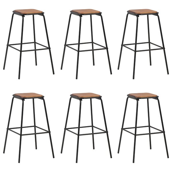 vidaXL Bar Stoolar 6 st svart massiv furu och stål 3054557