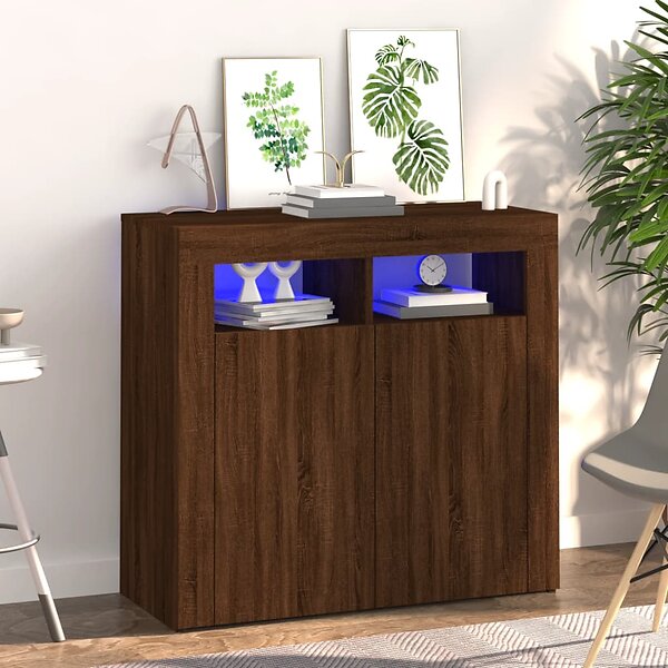 vidaXL Skænk med LED-belysning brun eg 80x35x75 cm 815731
