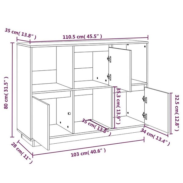 vidaXL Skänk vit 110.5x35x80 cm massiv furu 814355