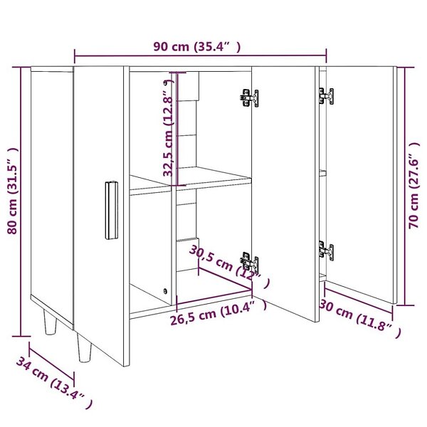 vidaXL Skänk svart 90x34x80 cm konstruerat trä 812493