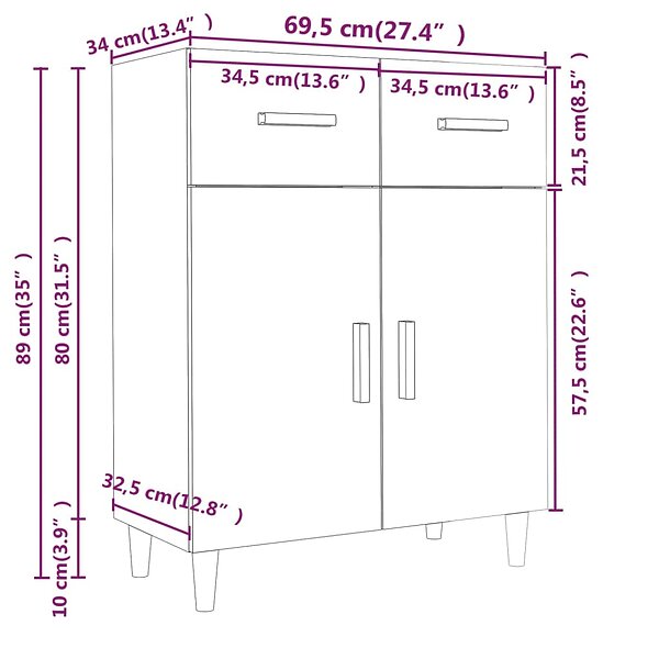 vidaXL Skänk sonoma-ek 69.5x34x89 cm konstruerat trä 812189