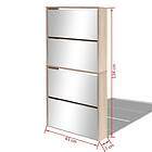 vidaXL Skoskab 4 Skuffer med Spejl Eg 63x17x134 cm 273935