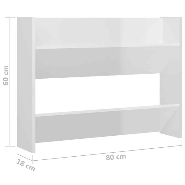 vidaXL Väggmonterat skoställ 2 st vit högglans 80x18x60 cm spånskiva 806754