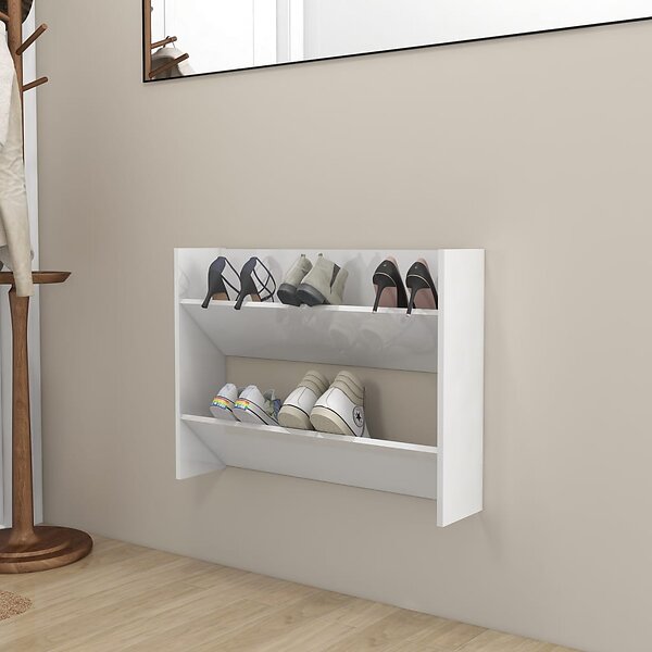 vidaXL Väggmonterat skoställ vit högglans 80x18x60 cm konstruerat trä 806753