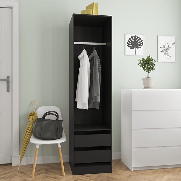 vidaXL Garderobe med skuffer Sort 50x50x200 cm Konstrueret træ 800613