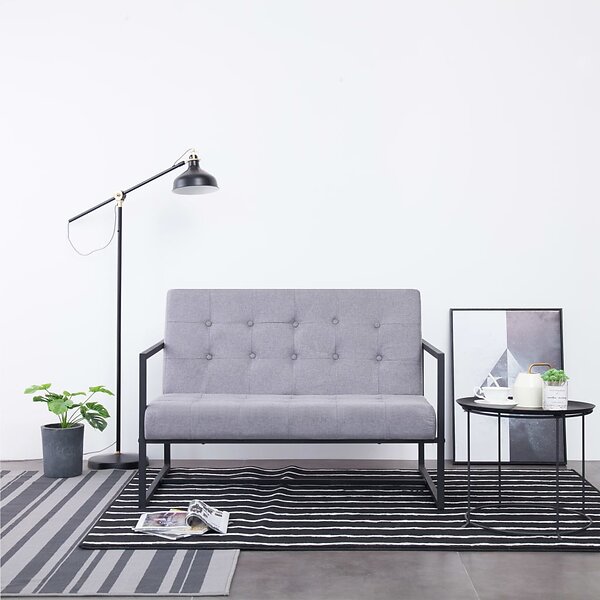 vidaXL 2-sæderssoffa med armlæn ljusgrå stål och tyg 282161
