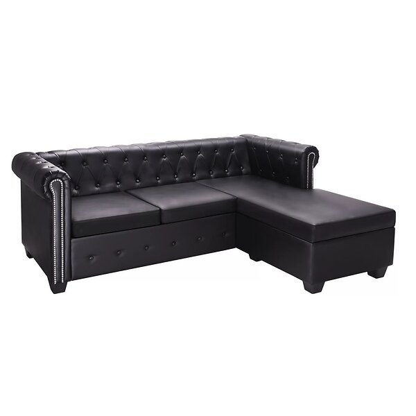vidaXL L-formad chesterfieldsoffa i konstlæder svart 275224