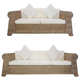vidaXL Soffgrupp 2 delar med dynor naturlig rotting 278602