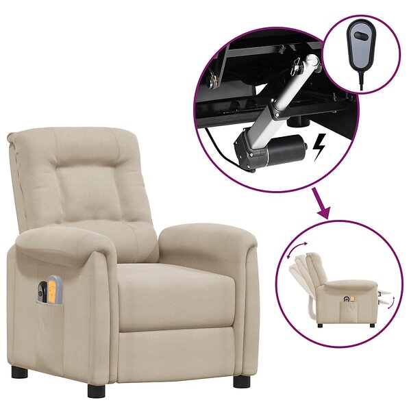 vidaXL Elektrisk massagefåtölj gräddvit mikrofibertyg 3098594