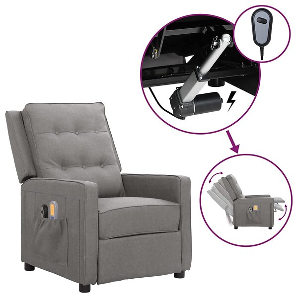 vidaXL Elektrisk massagefåtölj ljusgrå tyg 3098622