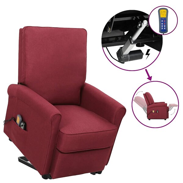 vidaXL Massagefåtölj med uppresningshjälp vinröd tyg 3098151