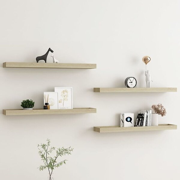 vidaXL Vägghyllor med kant 4 st Ek 80x15x4 cm MDF 330234
