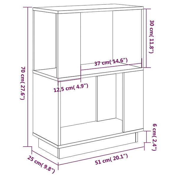 vidaXL Bokhylla/Rumsavdelar grå 51x25x70 cm massiv furu 814031
