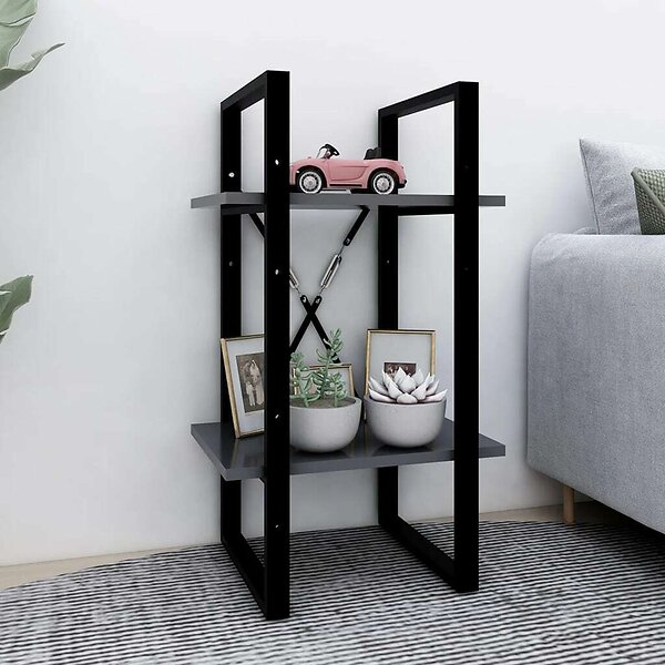 vidaXL Bokhylla 2 hyllplan grå 40x30x70 cm konstruerat trä 806409