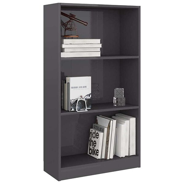 vidaXL Bokhylla 3 hyllor grå högglans 60x24x109 cm konstruerat trä 800872