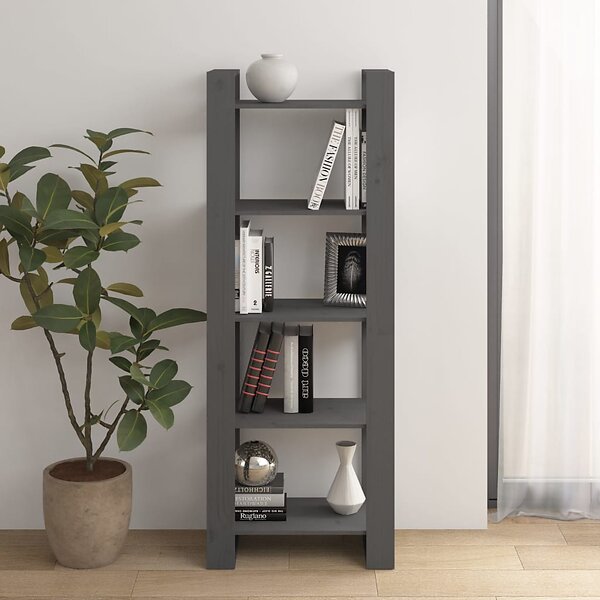 vidaXL Bokhylla/rumsavdelare grå 60x35x160 cm massiv furu 813891
