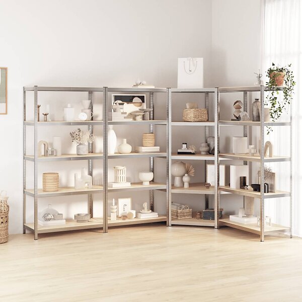 vidaXL Förvaringshyllor 4 st silver stål & konstruerat trä 5 hyllplan 3154220