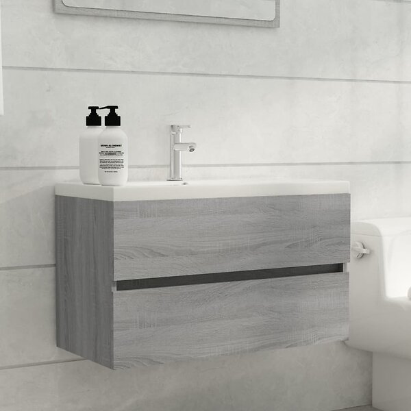 vidaXL Badrumsskåp med inbyggt handfat grå sonoma konstruerat trä 3120346