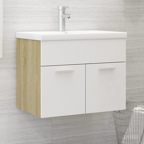 vidaXL Badrumsskåp med inbyggt handfat vit och sonoma-ek spånskiva 3071275