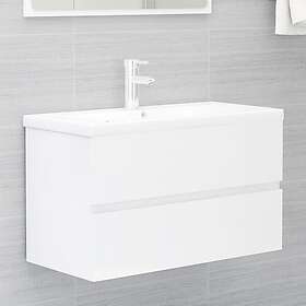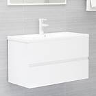vidaXL vaskeskab med indbygget håndvask spånplade hvid højglans