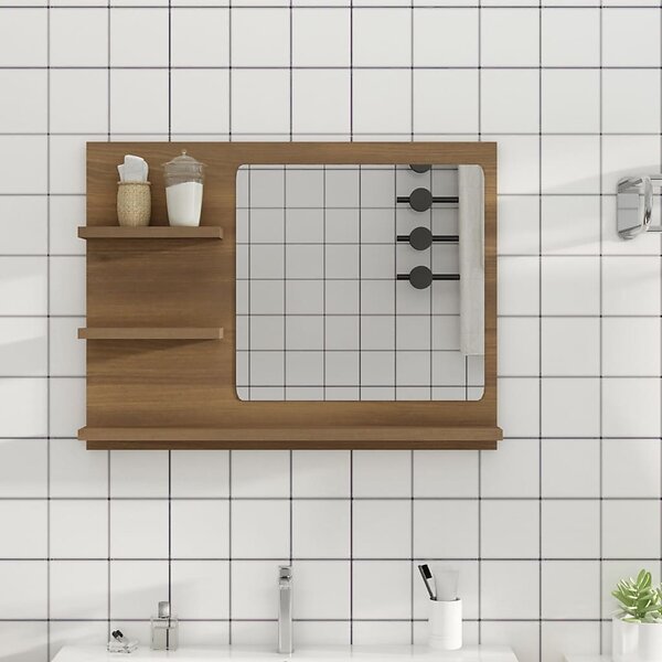 vidaXL Badrumsspegel brun ek 60x10.5x45 cm konstruerat trä 815662