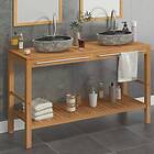 vidaXL Badrumsunderskåp massiv teak med handfat i flodsten 246497