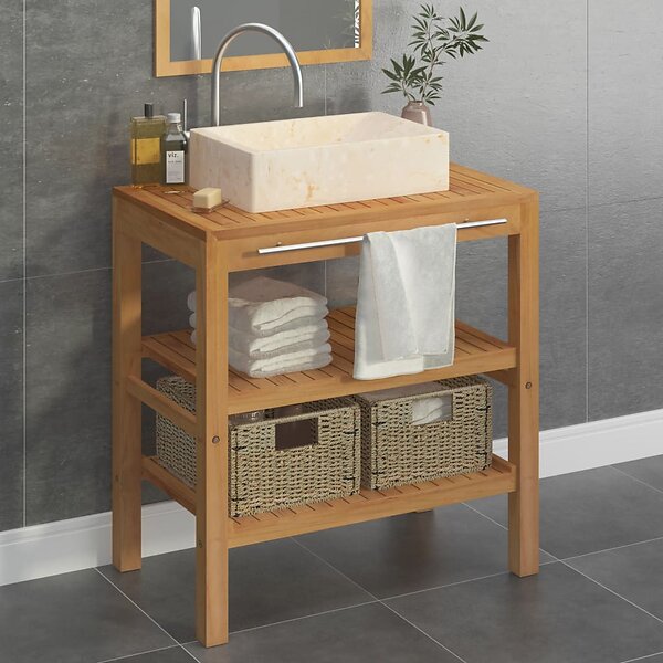 vidaXL Badrumsunderskåp teak med handfat marmor gräddvit 3058174