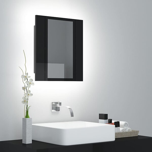 vidaXL Spegelskåp för badrum LED svart högglans 40x12x45 cm akryl 804954