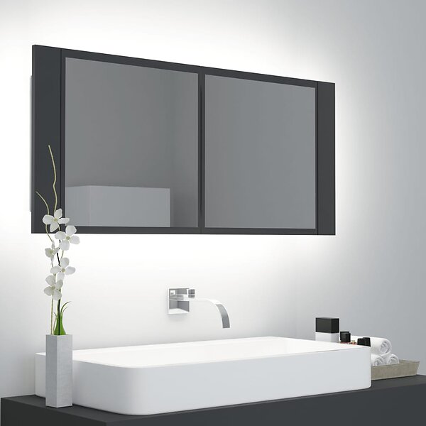 vidaXL Spegelskåp med LED grå 100x12x45 cm akryl 804982