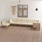 vidaXL Loungegrupp för trädgården med dynor 7 delar massiv furu 3076647