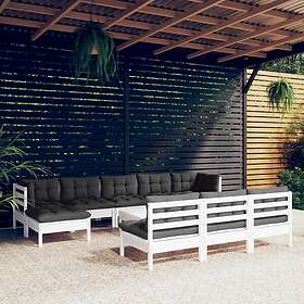 vidaXL Loungegrupp med dynor 11 delar vit massiv furu 3097122